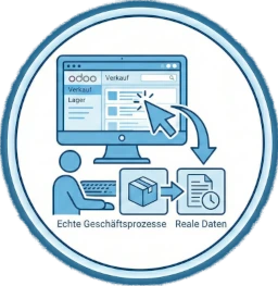 Sie lernen nicht an trockenen Beispielen, sondern direkt an Ihrer eigenen Odoo-Instanz oder einer realistischen Testumgebung mit Ihren echten Geschäftsprozessen.